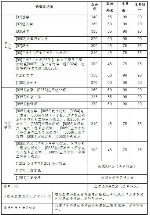 哈爾濱工業(yè)大學2024年碩士研究生招生考試復試基本線 01學校復試基本線是我校的最低復試分數(shù)要求,各學科應(yīng)在學校復試基本線的基礎(chǔ)上,根據(jù)生源的實際情況確定本學科的復試資格線。 02少...