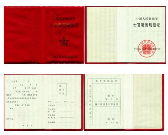 《士官退出現(xiàn)役證》樣式: