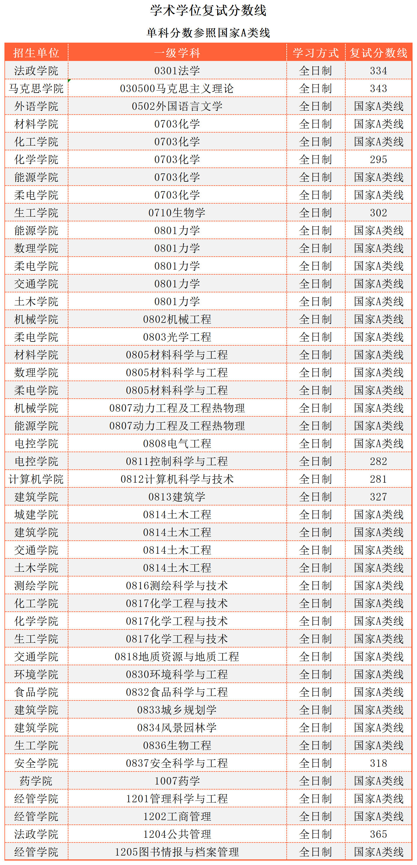一、學(xué)術(shù)學(xué)位復(fù)試分?jǐn)?shù)線單科分?jǐn)?shù)參照國(guó)家A類線