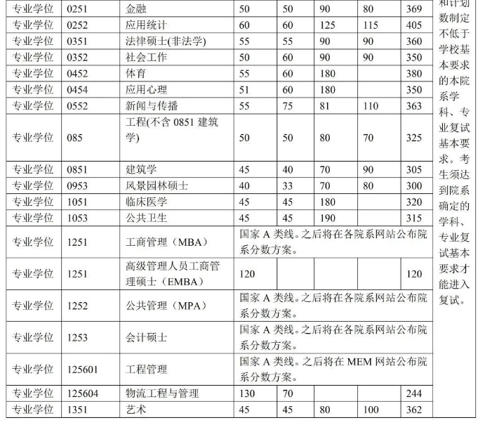 2023年清華大學碩士研究生專業(yè)學位招生復試自主劃線基本分數(shù)線