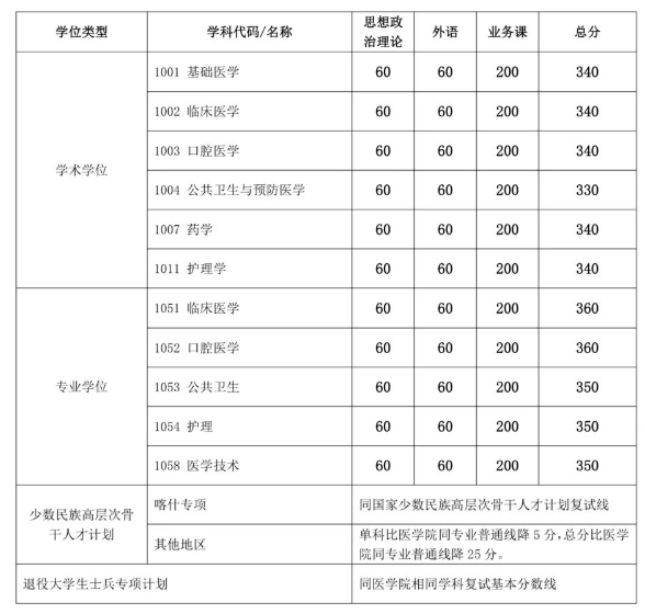 三、醫(yī)學(xué)院復(fù)試基本分?jǐn)?shù)線