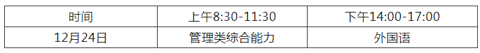 考試科目:管理類綜合能力(上午8:30-11:30)、外國(guó)語(yǔ)(下午14:00-17:00)。