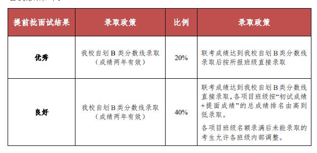 4.提前面試成績(jī)達(dá)到優(yōu)秀和良好者保留2年有效。如第二年國(guó)家招生政策有變化,則預(yù)錄取資格保留考生的錄取政策做相應(yīng)調(diào)整;